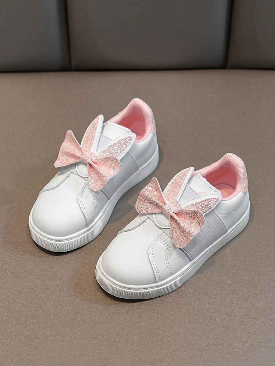 1 Pair Girls Sequin Rabbit Ear Star Decor Lightweight Waterproof Flat Bottom Sports Shoes, Comfortable Non-Slip Casual Outdoor Shoes For All Seasons