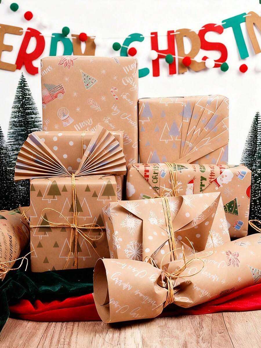 1 Roll Vintage Kraft Christmas Wrapping Paper, Retro Christmas Tree DIY Gift Wrapping Paper, Christmas Gift Wrapping Paper, Christmas Decorations, Christmas Wrapping Paper, Birthday Party Supplies, Christmas Eve Filler, Outdoor Christmas Decor, Christmas Accessories, Secret Santa Gifts, Christmas Gift Bags