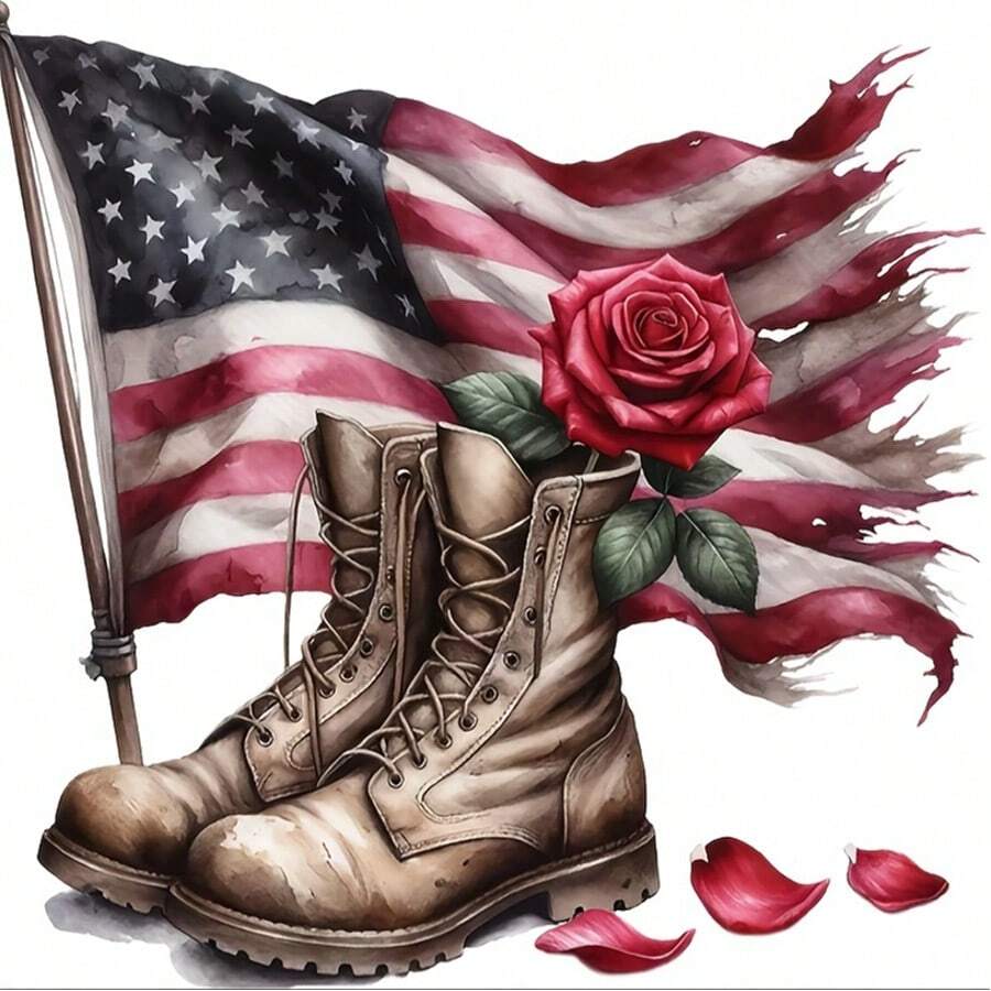 1/2/3 Pcs Anniversary Theme Heat Transfer Patches, Plastic, Washable & Ironable, Cartoon Soldier Boot & Rose Flag Design, Suitable For DIY T-Shirts, Hoodies, Jeans, Backpacks, Tote Bags, Pillows, Retro Baseball Caps, Patriotic Decoration