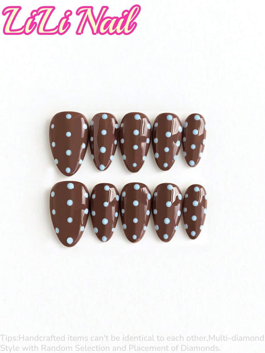10 Pcs Handcrafted Acrylic Press On Nails,Nails Supplies,Press On Nails Short,Almond Nails,Brown Nails,Blue Nails,Polka Dot Nails,Cute Nails,Fall Press On Nails,Uv Nail Glue,Classic,Nail Tech Supplies,Nail Set,Nail Stuff,Cute Nature Shiny Glitter False Nails,With Nail Tools