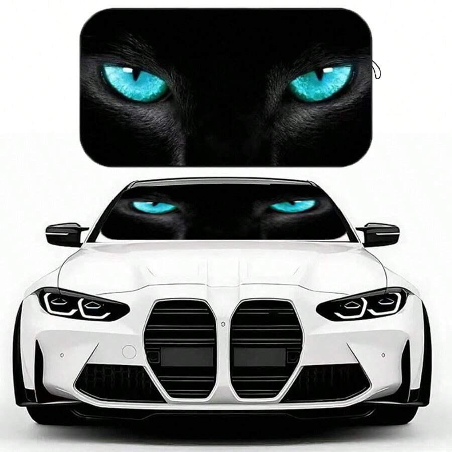 1pc Black Cat With Blue Eyes Car Sun Visor, Interesting Car Accessory Design, Made Of Polyester Fabric, Car Interior UV Protection Sunshade, Easy To Install, Suitable For Various Car Models, Provides Heat Insulation And Privacy Protection, Foldable For Easy Storage