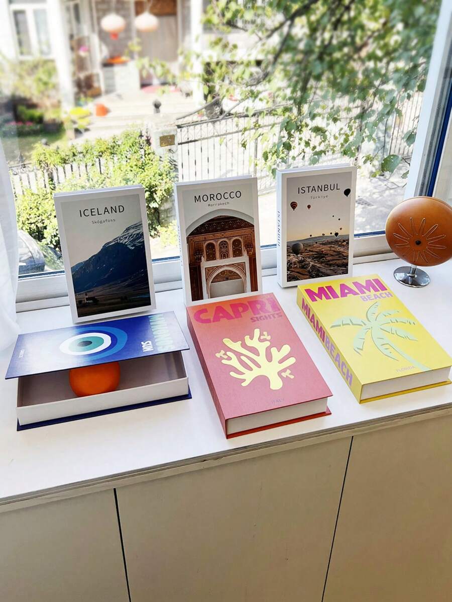 1pc Colorful INS Fake Book Decor, Openable Faux Book Storage Box, Minimalist Travel Theme Desktop Ornament Best Gifts Birthday Graduation