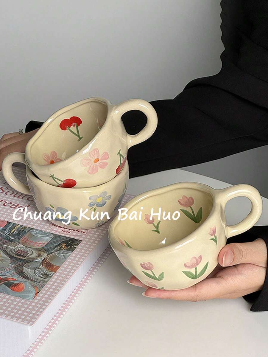 1pc Ditsy Floral Ceramic Coffee Cup, Ins Style Couple Mugs, High-Quality Breakfast Cup, Milk & Water Cup For Home Use Back To School
