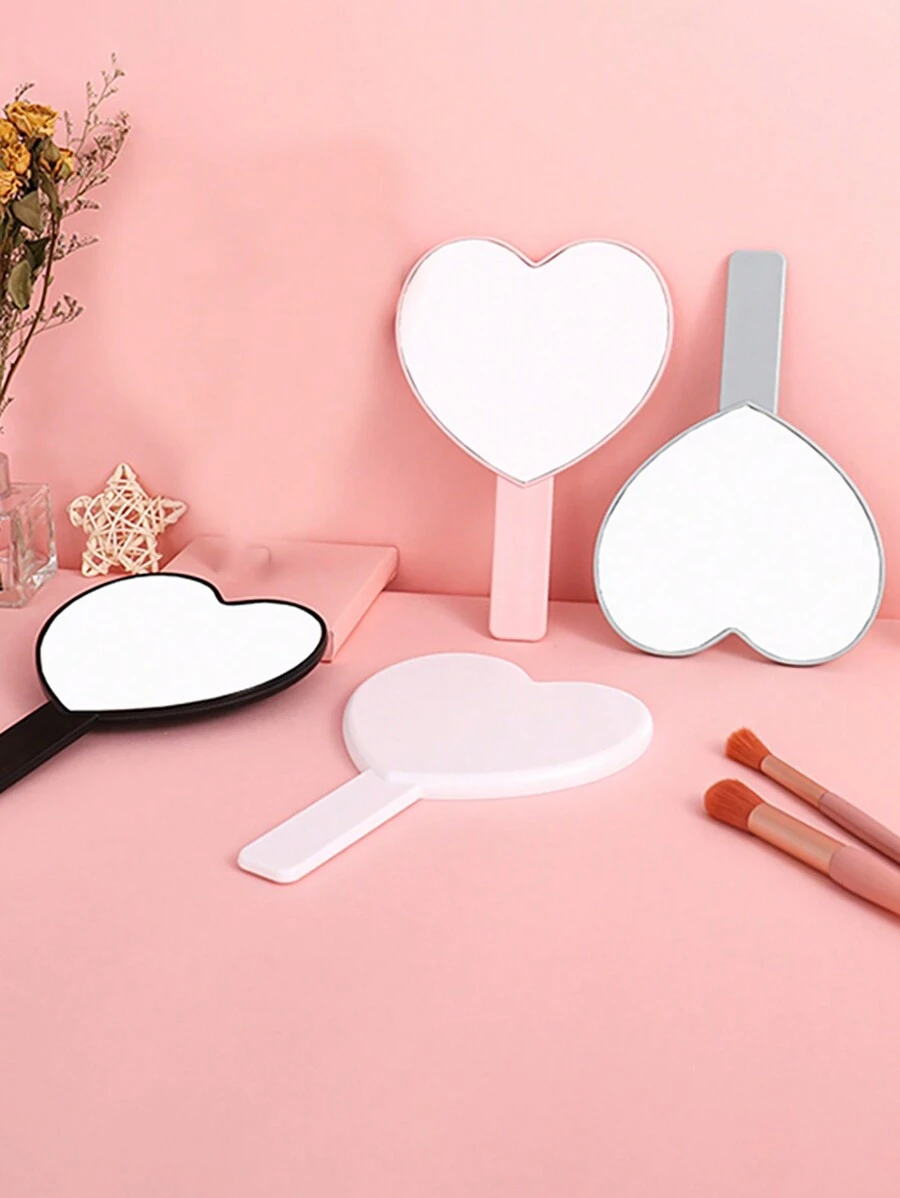1pc Ins Style Love Handle Mirror Makeup Mirror Portable Makeup Mirror Handheld Heart-Shaped Travel Mirror With Handle, Can Be Held Or Desktop Mirror, Suitable For Dormitory, Office And Travel, Women's Makeup Mirror Compact