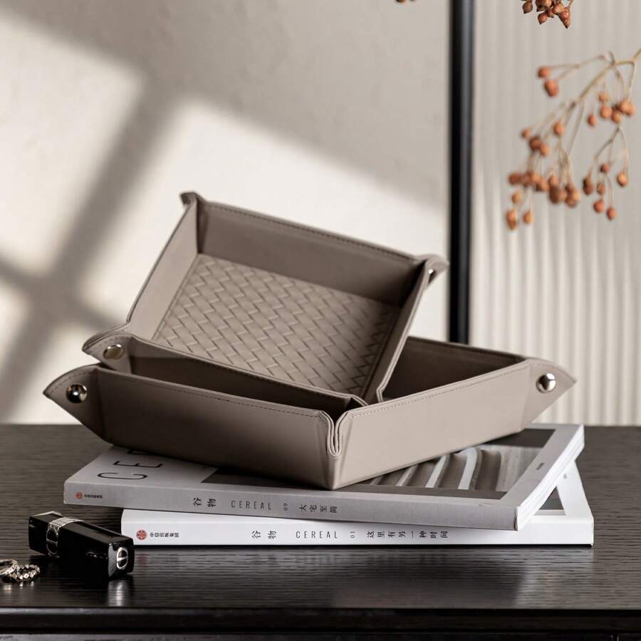1pc Jewelry Storage Box, Leather Jewelry Tray, Decorative Organizer Tray For Keys, Remote Control, Home Decor, Woven Leather Texture Metal Clasp Design, Multi-Size & Color Options, Suitable For Entryway, Tabletop, Moving For Women Storage Organizer Travel Essentials Back To School Dormitory Storage