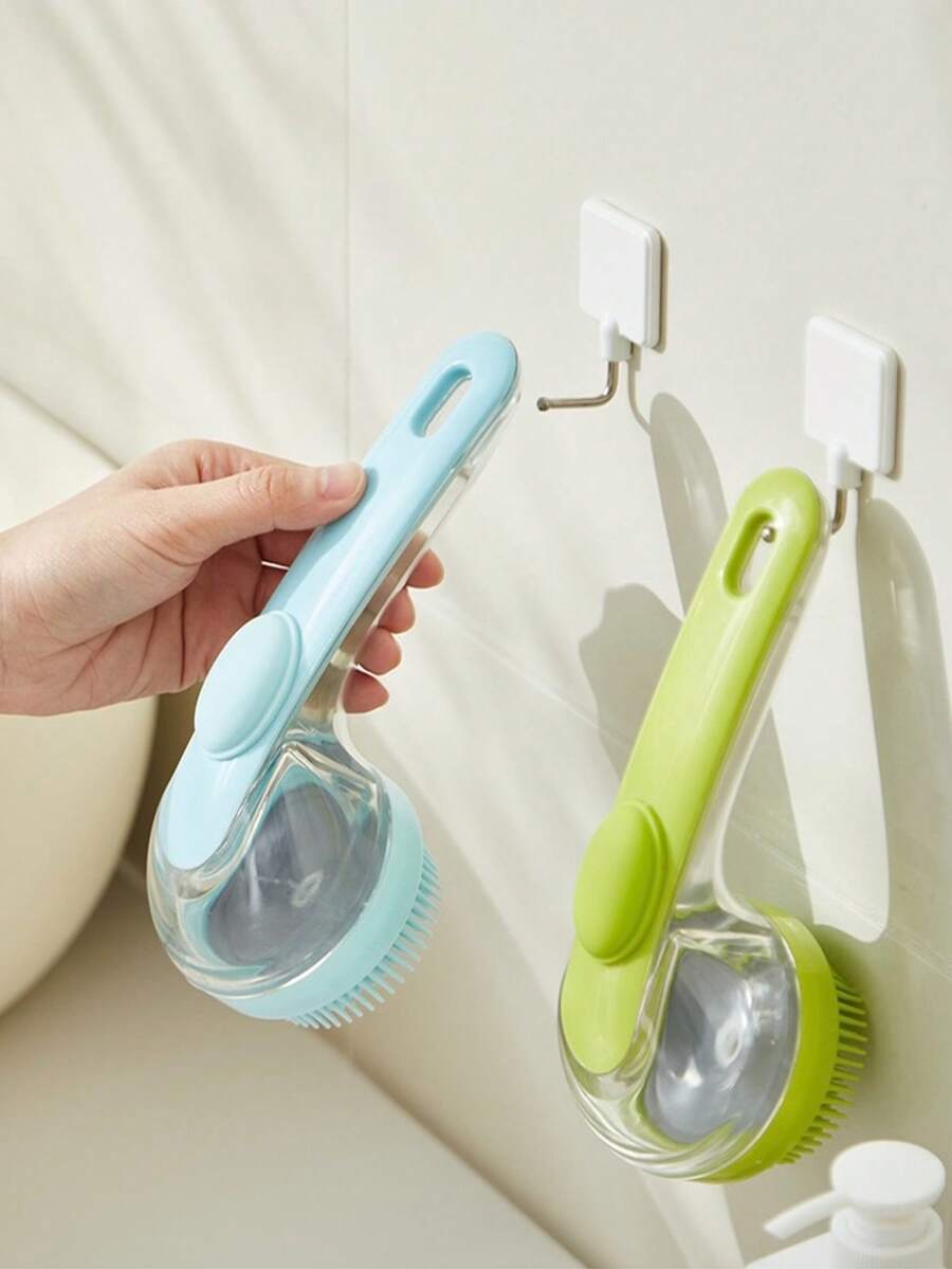 1pc/Long Handle Soft Teeth Silicone Deep Cleansing Shampoo Body Massage Brush, Press To Dispense Liquid Back Rub Multifunctional Bath Brush Massage Silicone Shampoo Brush Beauty Bath Massage Brush With Soap And Shampoo Dispenser Soft Silicone Brush Unisex Ladies' Day Gift Mother's Day Gift