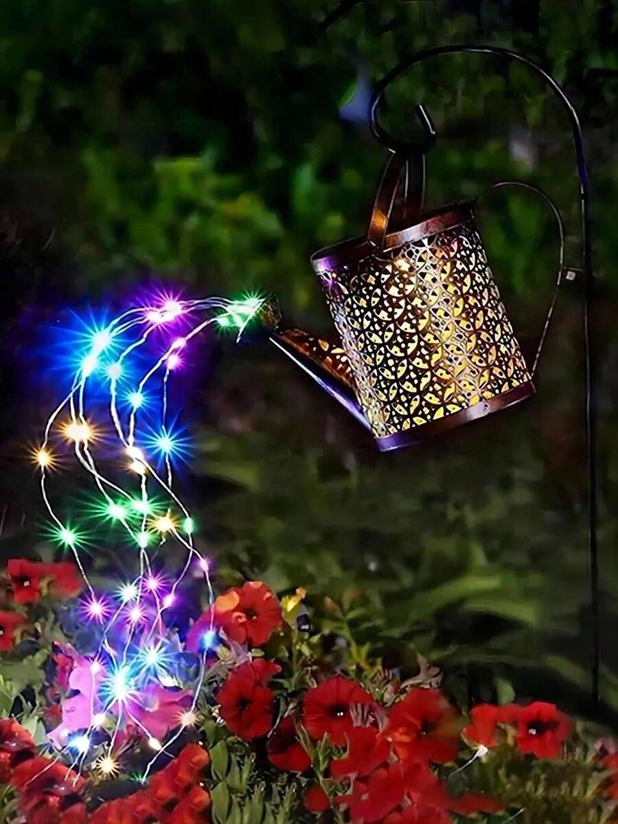 1pc/2pcs Solar Watering Can With Light String, Hanging Solar Waterfall Lamp, Retro Metal Kettle Light, Outdoor Garden Waterproof Decor Landscape Lights Suitable For Home Decor Garden Courtyard Porch Lawn Terrace Path Deck Alley Fence Swimming Pool Area Family Dinner Birthday Party Wedding Decoration Atmosphere Lamps (Warm Light/Color Light)