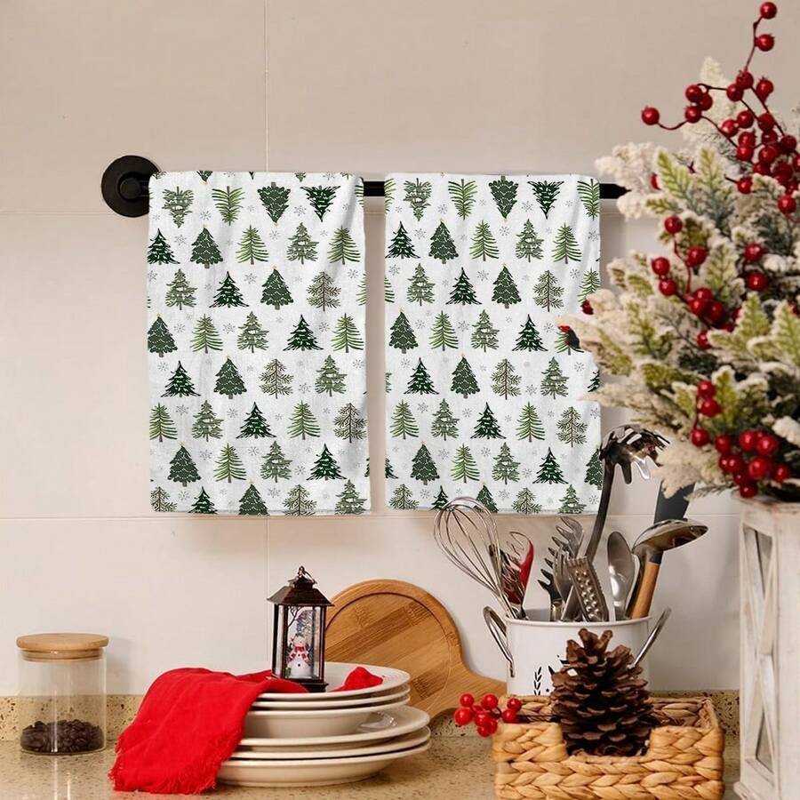 2/4/48pcs Vintage Christmas Kitchen Towels - Ultra-Soft, Absorbent Polyester Dish & Large Christmas Tree Patterns - Perfect For Holiday Decor & New Year Gifts,Christmas Decoration,Kitchen Decoration,Party Decoration