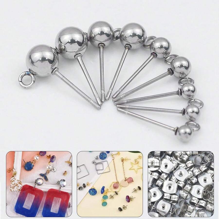 20pcs Stainless Steel Earring Making Kit With Round Beads And Butterfly Earring Backs - DIY Earrings Jewelry Making Set