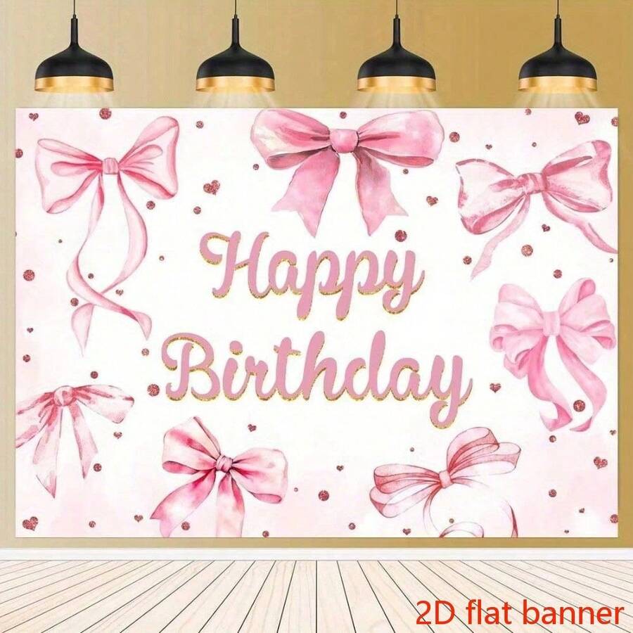 2D Flat Banner, Pink Bow Birthday Tapestry, Orange Background, Suitable For Bedroom, Living Room And Study Decoration. Easy To Install, Cute Style Home Wall Decor, Soft Texture.