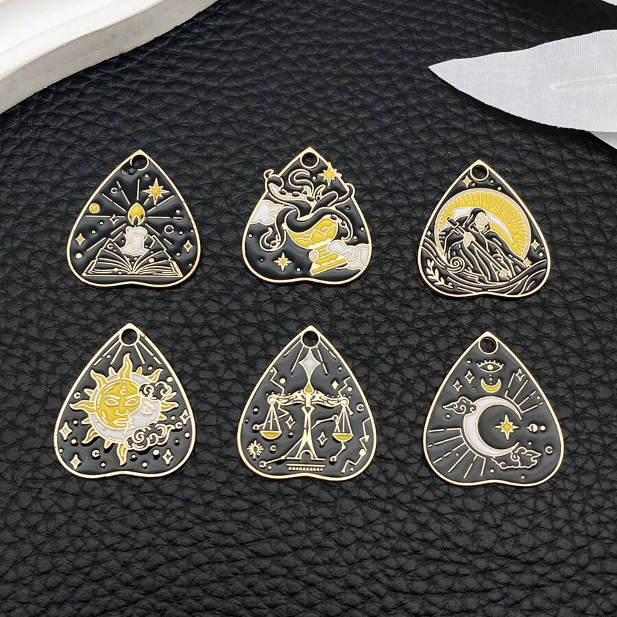 3/6pcs Black Alloy Enamel Charms Vintage Tarot Sun Star Moon Gothic Tarot Heart Shaped Charms For DIY Jewelry Crafts Making