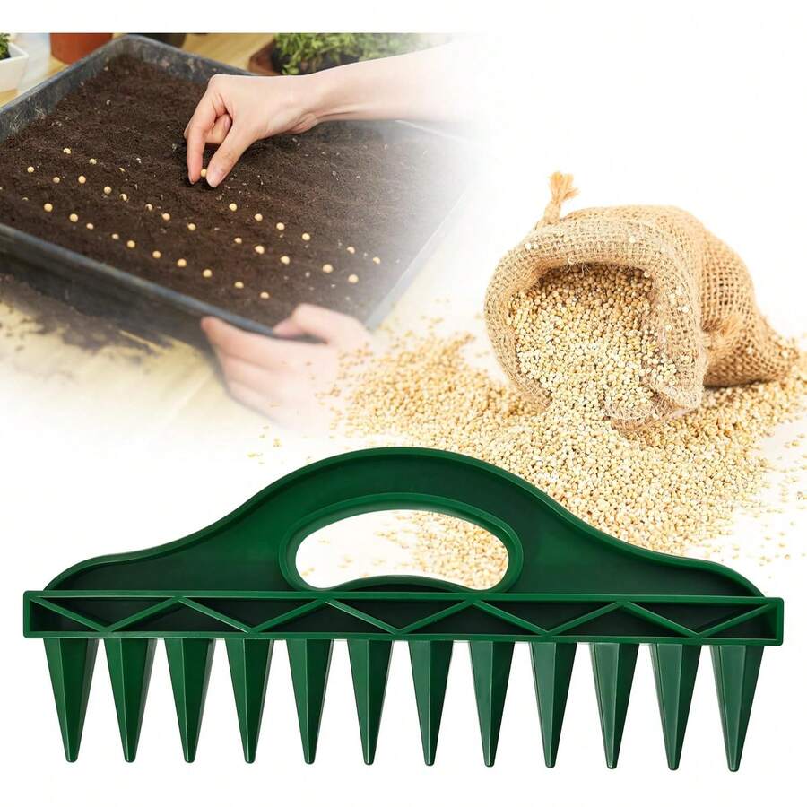 3pcs Seed Sowing Tools - 12 Hole Adjustable Seed Tray With Ergonomic Handle, Lightweight PP Soil Dibber Suitable For Vegetables, Flowers, Lawn, Raised Beds (190g)