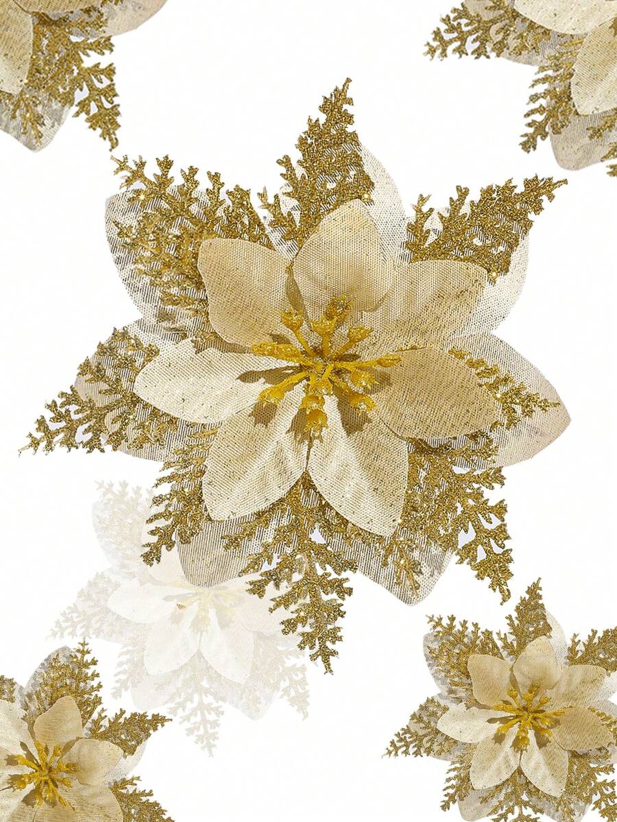 6/12/18/24PCS Christmas Artificial Flower Heads Sparkling Christmas Flowers For Home Weddings Parties Chirrstmas Trees Garlands DIY Holiday Decoration Home Decor Christmas Decorations Room Decor Christmas