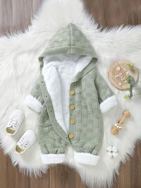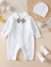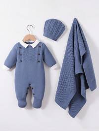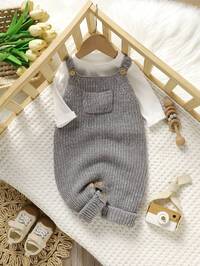 BebeiluSHEIN Newborn Baby Boy/Girl Toddler Fall/Winter Clothes Outfits: Green Knitted Rompers, Overalls, Sweaters, Comfortable, Versatile, Fashionable, Cute, Retro, Classic, Simple Design Basics, Suitable For Indoor, Outdoor, Skiing, Daily Wear, Sports, Play, Party, Photo Shoots, Holidays