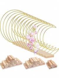 10pcs (5 Flower Garlands+5 Bases)Golden Metal Floral Wreath Centerpiece With Wooden Stands - Elegant DIY Circular Decor For Weddings, Parties, And Birthdays - Handcrafted Artificial Roses & Green Foliage Design, No Power Needed, Birthday Decor | Decorative Centerpiece | Handcrafted Design, Wedding Decorations,For Christmas, New Year, Valentine'S Day, Thanksgiving, Winter Party Decorations (5 Flower Garlands+5 Bases) #1 Bestseller