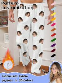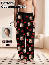 PrintstoryCustom Men's Sleepwear Pants With Unique Big Face Photo Print, Face Replacement Design, Festive Atmosphere Dawg Colorful,Cute,Adorable,Contracted,Funny Custom,Unique,Customized,Personalized Ideal Gifts For Him Boyfriend Bedroom,For Weddings,For Anniversaries,For Birthdays,For Holiday,Chic Autumn,Christmas Home Atmosphere,Roupa Reveillon