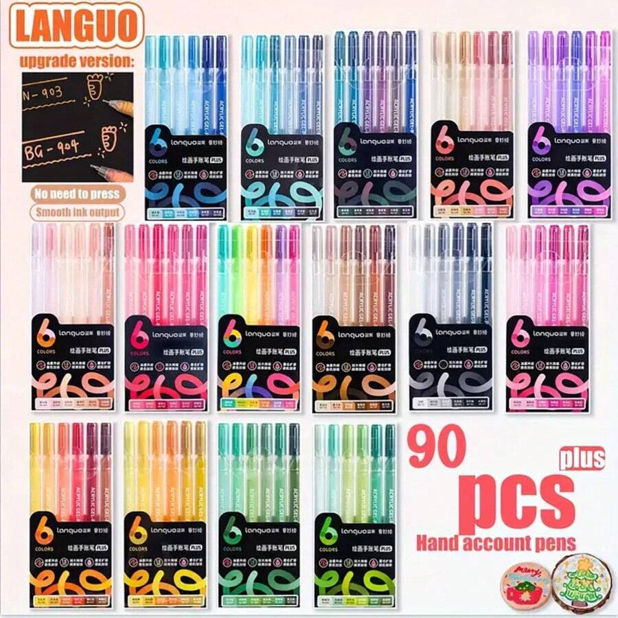 Languo Full-Color Handwriting Pen Set, 15 Boxes, Each Containing 6 Pens, 1.0Mm Multi-Color Drawing Pens, Creative Writing Gift Set, Suitable For Professional Artistic Use, Holiday Gifts, And Back-To-School Supplies