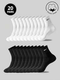 40pcs/30pcs/24pcs Unisex Comfortable Sports Socks, Men's Long Socks For Sports And Training, Women's Long Socks For Casual And Business Wear, Antibacterial, Soft, Black And White, Odor-Resistant, Moisture-Wicking, Lightweight And Comfortable, Suitable For Autumn/Winter, 20pcs/10pcs/8pcs/6pcs/4pcs/2pcs Set, Autumn #1 Bestseller