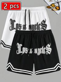 Sport MetroGents2pcs Men's Casual Sports Shorts, Boyfriend Style Printed, Drawstring Waist, Elastic Lightweight Sports Pants Suitable For Basketball, Baseball, Fitness, Running, Training, Sports, Outdoor Activities, Father's Day Gift Summer Summer New Men's Sports Shorts, Casual Fitness Shorts, Sports Shorts, Boyfriend Style Printed, Men's Fitness Wear, Drawstring Waist, Basketball Shorts, Elastic Lightweight Sports Pants, Suitable For Basketball, Baseball, Fitness, Running, Training, Sports, Outdoor Activities Black