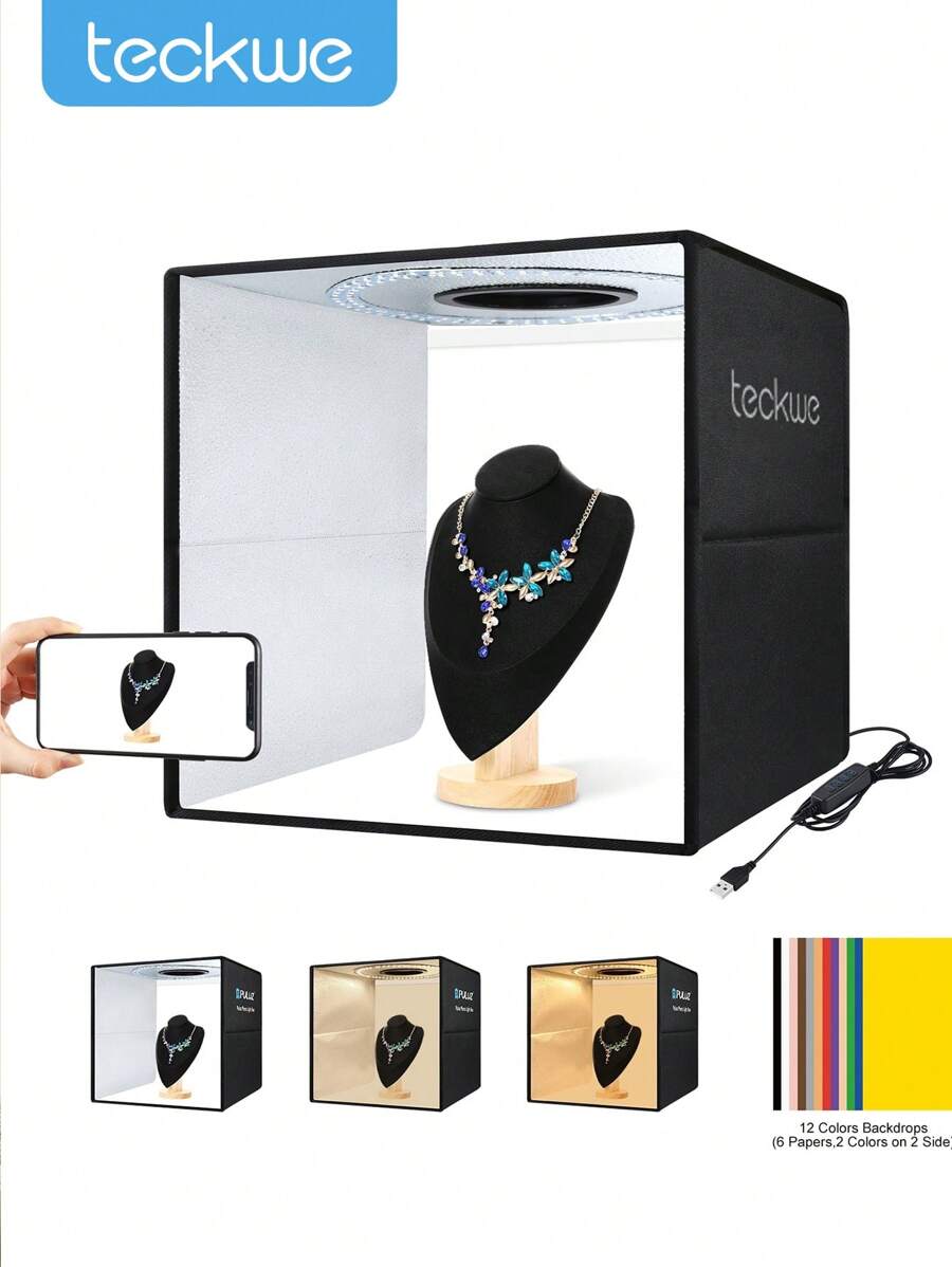 PULUZ 40cm Folding Portable Ring Light USB Photo Lighting Studio Shooting Tent Box With 6 X Dual-Side Color Backdrops, Size: 40cm X 40cm X 40cm(Black)