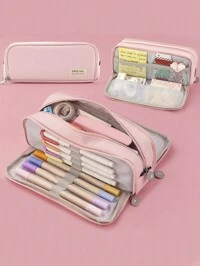 1pc Pink & Purple Pencil Case, Ins Style Stationery Bag, Multi-Functional Cosmetic Storage Pouch, Cute Multi-Purpose Organizer Bag, Pencil Box, Makeup Bag, Suitable For School, Stationery, Cosmetics, Skincare, Lipstick, Brushes, Coins, Small Items, Back To School Essential