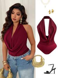 SHEIN SXY CURVESHEIN SXY Plus Size Women Sexy Off Shoulder Criss-Cross Ruched Bodysuit, Suitable For Street, Casual, Sexy, Daily Travel, Shopping, Dating, Cool And Comfortable To Wear. Easy To Match, Looks Slim, Accentuates The Body, Flatters The Figure. #6 Bestseller