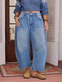SHEIN MOD CURVESHEIN MOD Plus Size Women Casual Loose Fit Distressed Wide Leg Jeans, Blue Summer,Vacation,Easter,Spring,Western,Office,Rave,Cottagecore,Country,Old Money Style Women,Going Out,,Festival,Rodeo,Airport,Kpop,Tropical Vacation,Nashville,European Summer,Concert,Cowgirl,Graduation,Elegant,Resort Wear Women,Business Casual Woman,Western Wear Women,Y2k,Y2k,Old Money Style Women,Holiday,Church,Airport /Airport Baggy Jeans Plus Size Vintage Blue Loose Wide Leg Jeans, Women's, Casual Versatile, Slimming, Spring/Summer New, Straight Cut, Suitable For Holidays, Festivals, Denim Outfits, Jeans, Pants, Outings, Women's Jeans, Women's Denim Outfits, Women's Jeans, Bottoms Plus Size Women Slim-Fit Versatile Straight Leg Denim Jeans, Old Money Style, Back-To-School, Teacher, Fall, Capri Pants, Office, Vintage, Mom Jeans, Summer, Bottoms, Denim, Business Casual
