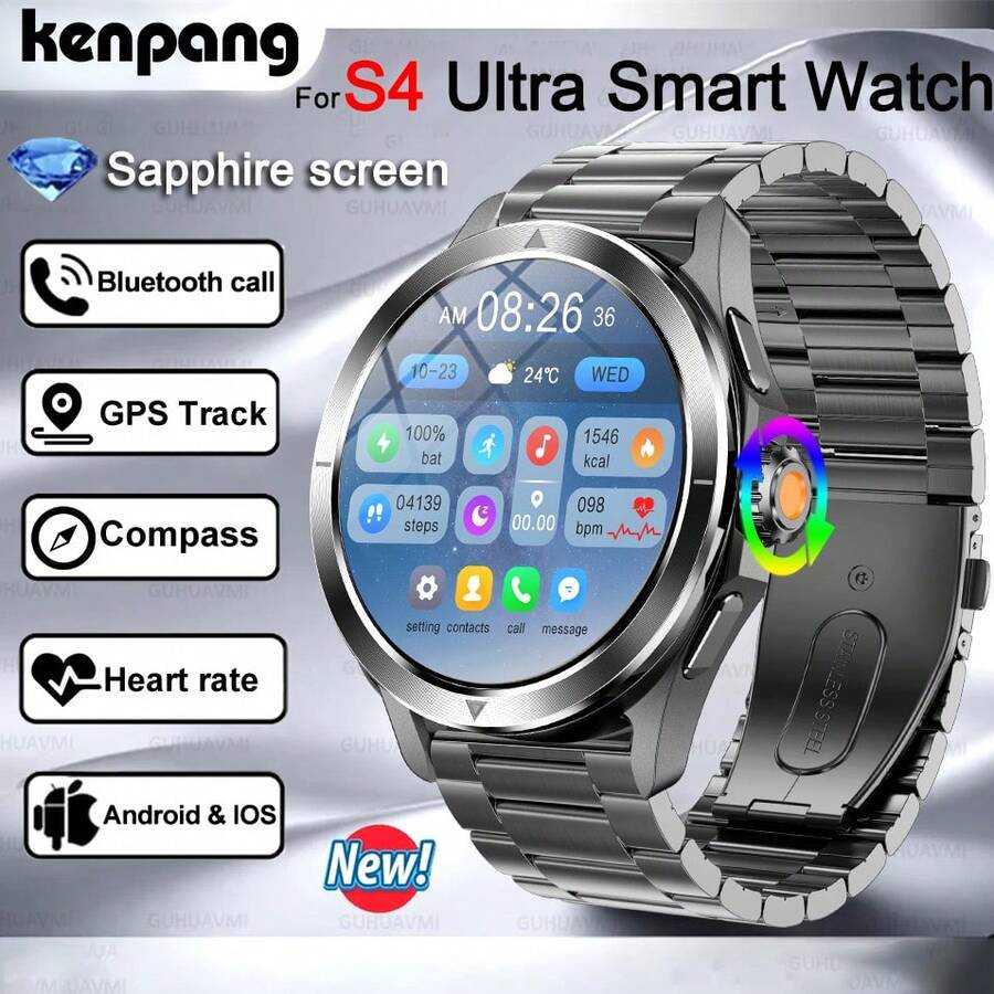 KENPANG 2025 NEW S4 Ultra Outdoor Sports Men's Smart Watch, 1.53inch AMOLED Full Touch Screen ,NFC Control, GPS Trajectory, Compass, Multiple Sports Modes, Heart Rate/Sleep Fitness Tracker, And Water-Proof Bluetooth Call .Smartwatches Compatible With IPhone And Android Phones, The Best Gift For Boyfriends.