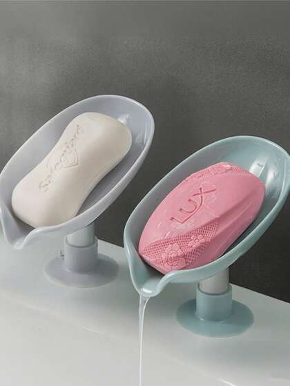 2pcs Leaf Shaped Soap Dish, Suction Cup Soap Holder, Bathroom Accessories, Draining Soap Tray, Waterless Soap Dish With Suction Cup, Non-Slip Bathroom Accessories
