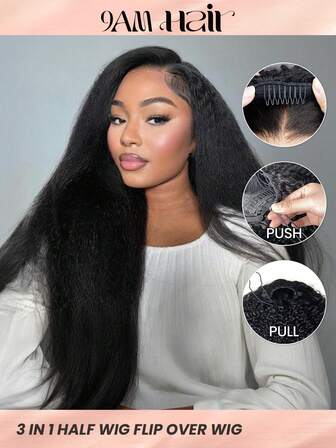 Wear Go Half Wig Kinky Straight Flexible Fit 3 In 1 Half Wig With Drawstring Natural Hairline Seamless Beginner Friendly Wear And Go Glueless Human Hair Wig Pre-Plucked Hairline 180% Density 14-16 Bob Inch 18-26 Regular Inch Natural Color Unprocessed Virgin Hair Christmas Wigs Y2K Human Hair Wig Christmas Gifts Hair Accessories 100 Human Hair Wigs Real Human Hair Lace Wig Daily Use Quick Ship Fast Shipping Vacation Travel For Women