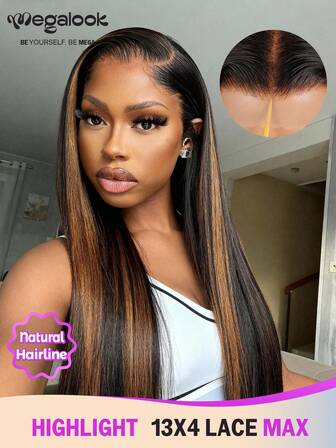 MEGALOOK 13x4 Lace Front Wig #30 Highlight Straight 100% Virgin Human Hair - Pre-Bleached Knots, Pre-Plucked Hairline, Transparent Lace - Premium Virgin Remy Hair, Lightweight Adjustable Cap - Soft & Stretchy, All-Day Comfort, No Glue Needed - Minimal Shedding, Natural Hairline, Invisible Seamless Wig, Suitable For Bride, Wedding, Christmas Party, Vacation, Back To School And More.