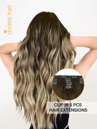 DOORES 5PCS Seamless Straight Clip In Hair Extensions Real Human Hair Pieces Natural & Soft, Walnut Brown To Grayish Brown And Bleached Blonde 73-85g 100% Brazilian Remy Human Hair For Thinning Hair For Women And Men, Double Weft Clip In Extensions For Full Head – Daily Use, Easy To Wear & Invisible For Winter, Christmas, Cosplay, Campus And Date Night