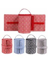 Woven Tool Storage Bag With Inner & Outer Compartments, Portable Yarn & Crochet Hook Organizer, Sewing Tool Storage, Plaid Roll-Up Set, Suitable For Knitting Enthusiasts & Beginners