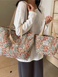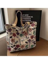 1pc Floral Print Canvas Tote Shoulder Bag, Portable Storage Commuter Bag Student Large Capacity Tote Bag, Embroidered Flower Shoulder Bag, Waterproof Canvas Travel Shoulder Bag, Suitable For Office, School, Travel, Mothers Going Out To Class Commuting Large Capacity, Portable, Suitable For Female College Students, Very Suitable For Back To School, First Day Of School, Middle School, High School, Shopping, Vacation #9 Bestseller