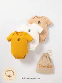 Newborn Baby Boy 3pcs Letter Graphic Bodysuit With Bag