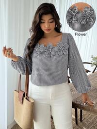SHEIN CURVE+ CURVE PLUS /Valentine's Day/Plus Size Glittery Striped & Printed Women's T-Shirt, Full Pattern, Suitable For Summer,Valentines,Rose,Heart,Polka Dot,Love,Lip,Cupid,3D Flower #5 Bestseller