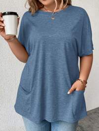SHEIN LUNE Plus Size Solid Color Round Neck Short Sleeve Casual T-Shirt