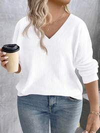 SHEIN CURVE+ Plus Size Plus Size V-Neck Loose Knit Pullover T-Shirt