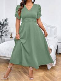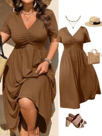 DreamSkyne Women's Plus Size Elegant Pure Red Woven Non-Stretch Fabric Spaghetti Strap Dress With Front V-Neck, Shirred Elastic Back, Cinched Waist, Extra Large Flowy Hem, Perfect For Parties, Gatherings, Night Outs, Christmas, Halloween, New Year's, Valentine's Day Romantic Dates, Concerts, Fashionable Versatile Design, New Women's Plus Size Fashion Item Long DressValentine's Day #5 Bestseller