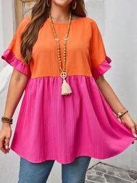 EMERY ROSE Plus Size Women Contrast Color Round Neck Loose Fit Smock Blouse,Country Casual Vacation Outfits Woman,Simple And Fashionable For Everyday Wear,Summer Tops Women,Summer Outfits For Women,Vacay Outfits Women,Gifts For Mother,Bohemian Clothes,Springbreak,Rave Outfits, Tunic Tops For Women, Colorful Tops For Women #1 Bestseller