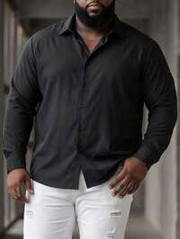 ResortEase Men's Plus Size Solid Color Long Sleeve Plain Dress Shirt, Going Out, Fitted Black Shirt, Men's Dress Shirt, Black Button-Down Shirt, Fall