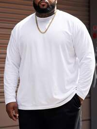 ResortEase Plus Size Men's Solid Color Round Neck Long Sleeve Simple Casual Top Tee, For Fall