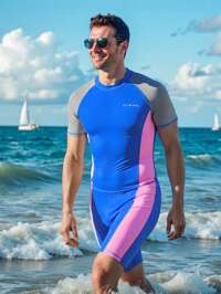 Manfinity VDAYZManfinity VDAYZ Men's Couple One-Piece Swimsuits, Suitable For Water Sports, Beach Vacations, Couple Beachwear, Summer Beach Vacations, Beach Parties, Men's Swimwear, Beach Sets, Men's Holiday Sets, Valentine's Day Sets, Summer Sets, Men's Valentine's Day Sets. Men's Fashion Beach Couple Shorts, Men's Solid Color Raglan Sleeve Zipper Front Casual Jumpsuit Swimsuit Couple Swimwear Couples Bathing Suit Sets Couples Swim Sets Couple Bathing Suit Set Black Swimwear