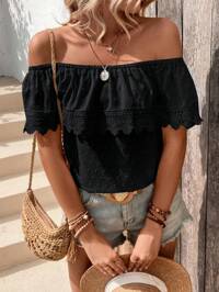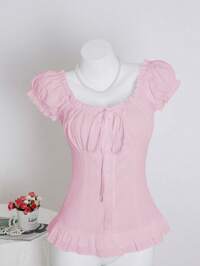 SHEIN BAE Women's Solid Color Off Shoulder Ruffled Long Sleeve Asymmetrical Tie Hem Blouse, Suitable For Autumn/Winter, Spring, Romantic, Vacation, Valentine's Day, Everyday Wear, Princess Style, White Shirt, Birthday, Bridesmaid,Valentine's Day,Valentine Outfits For Women SHEIN MOD Women's Colorblock Off Shoulder Crossed Tie Flared Sleeve Blouse.White Cotton Textured Off Shoulder Top, Brown Faux Suede Corset Waist, Peplum Hem, Lace-Up Front, Long Flared Sleeves, Renaissance Style, Romantic, Vintage Inspired, Elegant, Medieval, Soft Fabric, Feminine, Unique Design, Flowy, Lightweight, Retro, Flirty