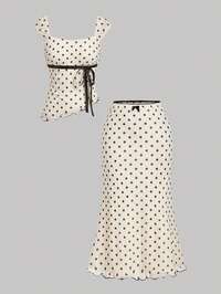 SHEIN MOD Women's Polka Dot 2pcs Set: Asymmetric Hem Top & Low Waist Fish Tail Skirt With Bow Decor,Retro,Vintage,Two Pieces Summer Set,Wedding Guest,Vacation,Birthday Outfits For Women,Country Concert Outfit,Concert Outfit Women,Boho,Vacation Two Pieces Set,Hawaii Outfits Women,Brunch Outfits For Women #2 Bestseller