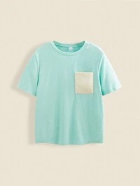 THE HAPPY LOOK Teens Boys' Contrast Color Pocket Soft Terry Crew Neck Loose Casual T-Shirt For Back To School Season