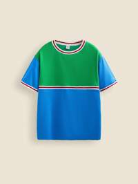 THE HAPPY LOOK Teenager Boys' Colorblock Knit Outdoor Sports Short Sleeve Casual T-Shirt, Back To School Sportswear, Spring Summer