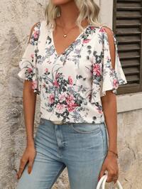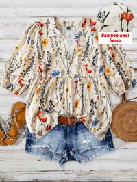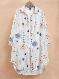 Watercolor Floral Print Shirt, Loose Fit, Mid-Length, Single-Breasted Design, Breathable And Comfortable, Suitable For Work And Casual Occasions. Featuring A Soft Lavender Floral Print Design, Classic Collar And Single-Breasted Design, Simple Yet Retro. Suitable For Work, Shopping, Dates And Various Occasions, An Excellent Item To Enhance Your Overall Look.